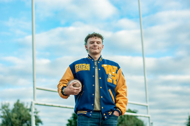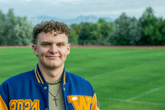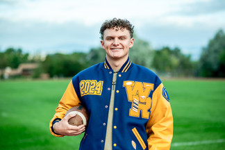 Hudson, a 2023 senior at Wheat Ridge High School, opted to split his Colorado senior portrait session between his high school football field and a natural area along a river where he used to play as a child.